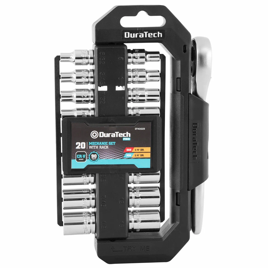 1/4″ Drive 20 Piece Mechanic Set With Rack