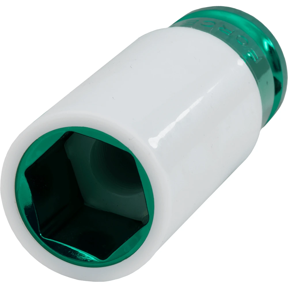 Manufactured specifically for Alloy Wheels these 1/2″ Drive Coloured 6pt. Flank Deep Impact Sockets from Force have a hard-wearing nylon sleeve on the outside of the sockets which protects the wheels from chipping & scratching. These sockets come colour coded for easy identification & can fit on any 1/2″ ratchet with ease. Individually sold for your convenience.
