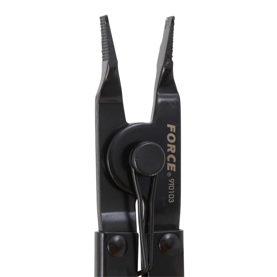 These 230mm (9″) trade duty Circlip Pliers from Force feature heavy drop forged tips that are flat, straight & serrated. They feature spring loaded non-slip rubber handles & the jaws open to a massive 38mm (1-1/2″). Made from quality materials, they’ll withstand years of repeated use.