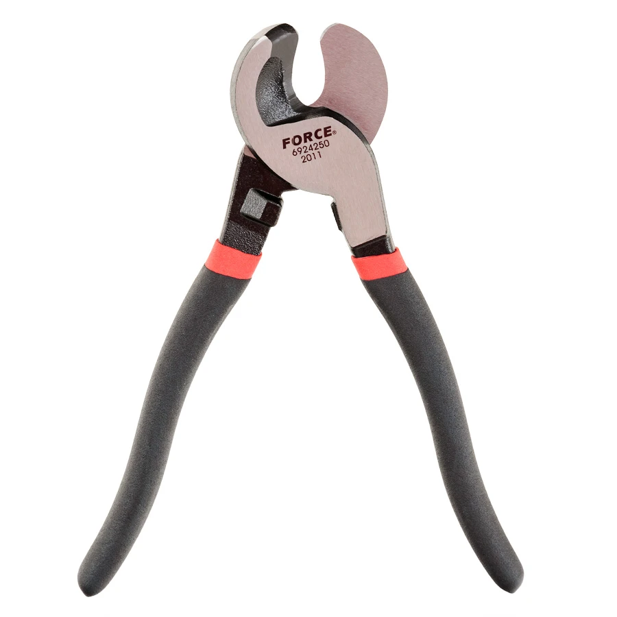FORCE 250mm/10″ Industrial Strength Cable Cutters have a curved jaw design that cuts coaxial & other soft cables up to a full 12mm in diameter with ease. The hardened cutting jaws are engineered to cut clean & stay sharper longer. Another top quality Force product that comes with a guaranteed Limited Lifetime Warranty !