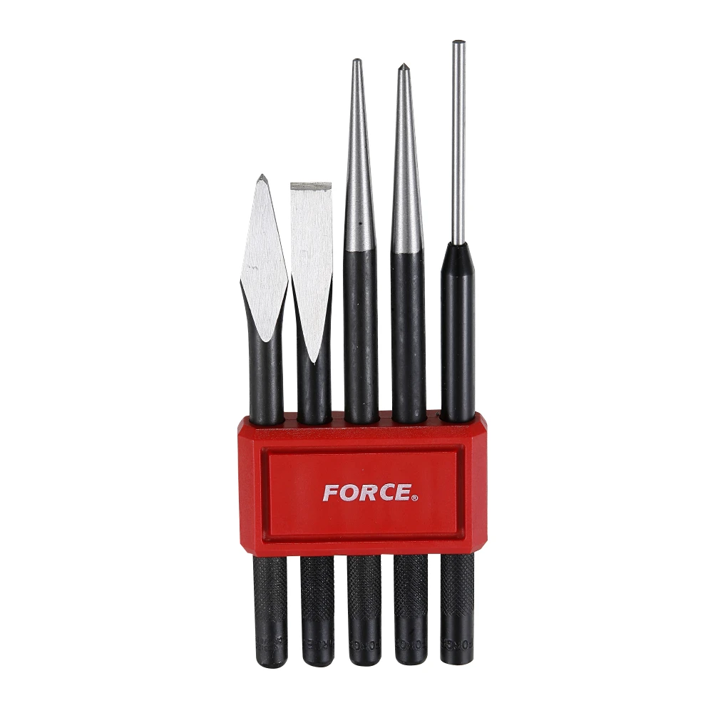 These industrial quality 5 piece mixed chisel & punch sets are drop forged then hardened & tempered for long life & durability. Housed in a handy clip holder for easy storage these punches & chisels are a must have for any tool kit. Top quality at an unbelievable price! Backed by the Force Limited Lifetime Warranty .
