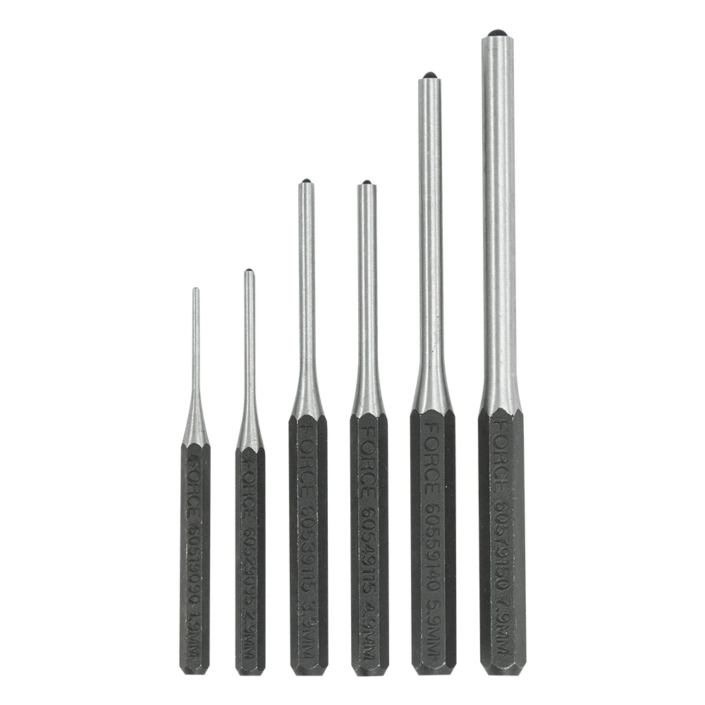 A trade quality 6 piece Spring Pin Punch set from Force. Designed for daily use in serious mechanical workshops. Includes 6 sizes: 1.9mm, 2.9mm, 3.9mm, 4.9mm, 5.9mm & 7.9mm. Backed the Force Full Limited Lifetime Warranty !