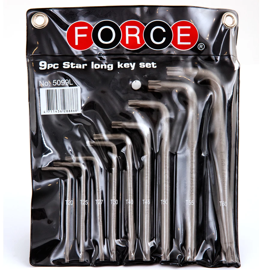 These industrial quality 9 Piece Star long key sets are equivalent to any major brand yet sell for at up to half their price! They are extra-long for all those hard to reach places & cover all of the popular sizes. Backed by the Force Limited Lifetime Warranty .