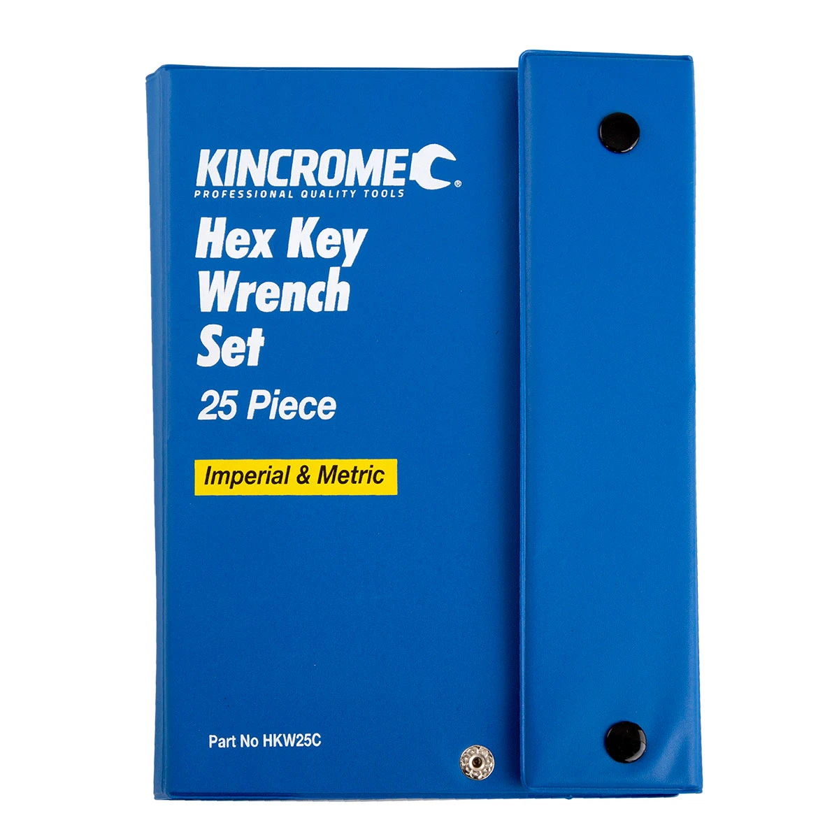 These KINHKW25C Kincrome Metric & Imperial 25 Piece Hex Key Sets are trade quality & ideal for professional applications. 13 metric hex keys are included with sizes ranging from 1.5mm to 10mm plus 12 imperial hex keys with sizes ranging from 1/16″ to 3/8″. These have been manufactured from high quality hardened & tempered chrome vanadium steel making them incredibly tough.