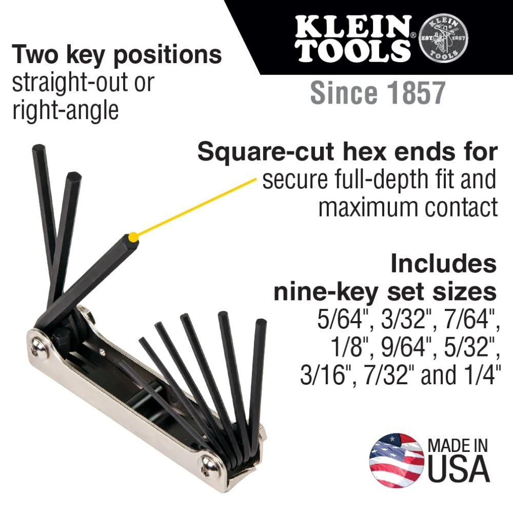 Klein Tools 9-Key Imperial Folding Hex Key Set – 70591