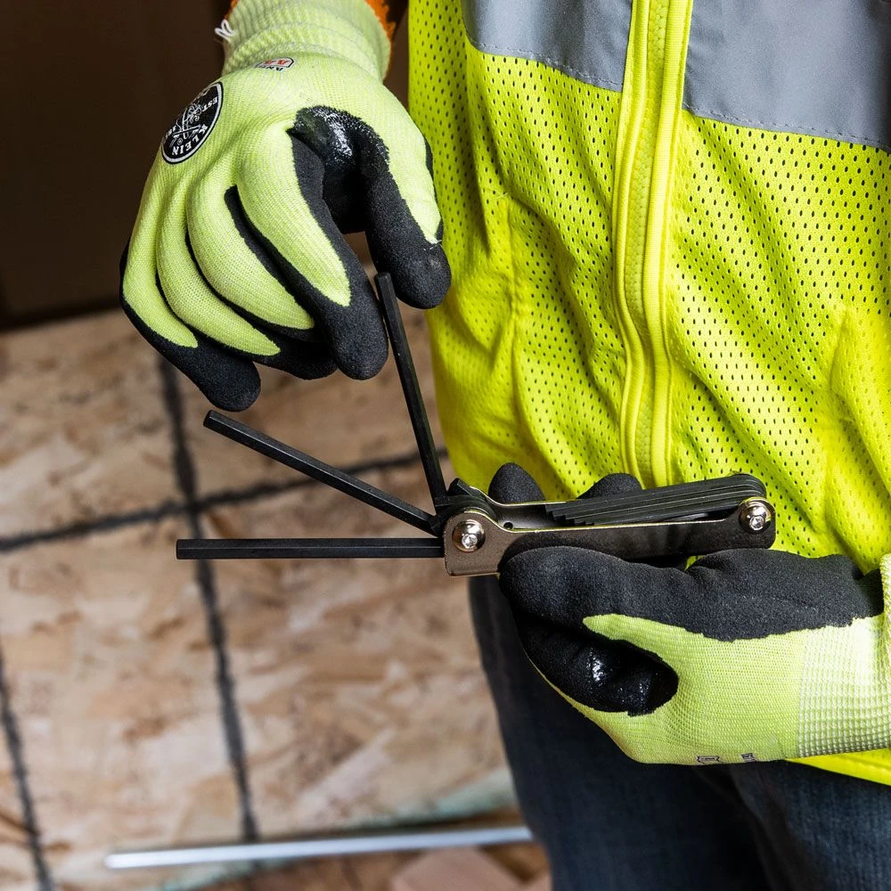No need to worry about lost hex keys with the Klein Tools Folding Hex Key Set. This handy tool features 9 different-sized hex keys in a convenient folding tool that fits easily into your pocket or tool box. The hex ends are square cut so they fit securely into hex sockets.
