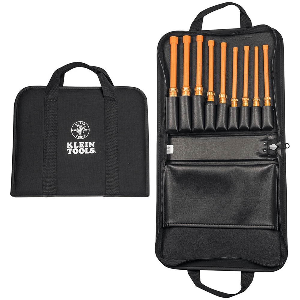 This 9-piece insulated nut driver set features an assortment of popular nut driver sizes. Each is individually tested to exceed the IEC 60900 & ASTM F1505 standards for insulated tools. The highly durable black nylon case features a zip-up closure, custom-fitted tool pockets, plus an extra pocket for storage of papers & other items. Made in the USA.