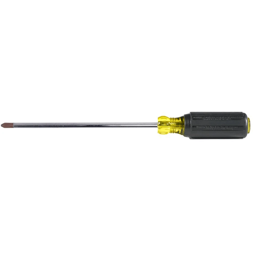 The Klein Tools 7” (177.8 mm) Phillips-Tip Screwdriver features a durable black tip that is precision forged & ground with square edges to fit screw openings securely. Its shaft will not bond or twist during normal use due to integral flanges that provide an extra-strong, torque-proof anchor in the handle. This insulated screwdriver is made of high-quality tempered steel.