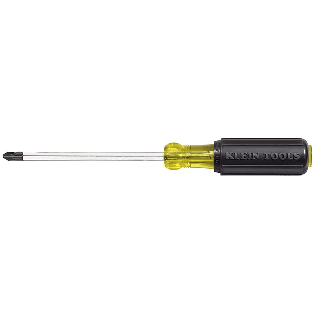 The Klein Tools 6” Phillips-Tip Screwdriver features a durable black tip that is precision forged & ground with square edges to fit screw openings securely. Its shaft will not bond or twist during normal use due to integral flanges that provide an extra-strong, torque-proof anchor in the handle. This insulated screwdriver is made of high-quality tempered steel.