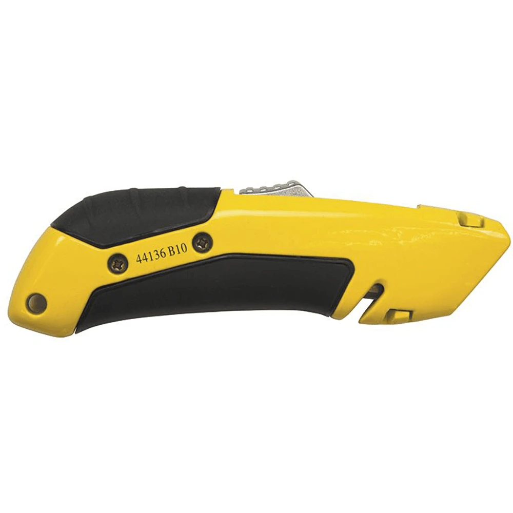 This practical tool combines the best features available in a utility knife, with rugged construction & user safety in mind. It has a bright yellow handle for easy visibility. When the blade is extended & pressure is applied to a hard surface, then removed from the surface when cutting is complete, the blade retracts automatically & fully into the housing for user safety. The knife uses standard replacement utility blades, Cat. No. 44103 & 44101. Lanyard hole keeps the knife safely tethered to protect you from losing it or from injury if the knife is dropped.