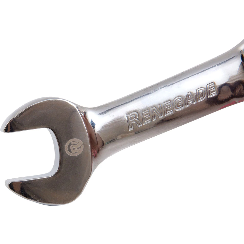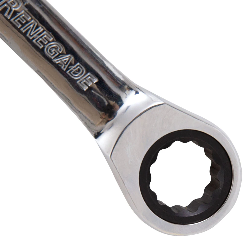 These Renegade Industrial Imperial Ratchet Spanners are of superb quality. Features a very fine 72 teeth ratchet mechanism which ratchets at just 5-degree increments, a feature that is highly appreciated by the best mechanics. These ratchet spanners are incredibly durable as they have been manufactured from drop forged chrome vanadium steel that has been hardened & tempered plus the mirror chrome finish & state of the art design makes these spanners very comfortable to use.