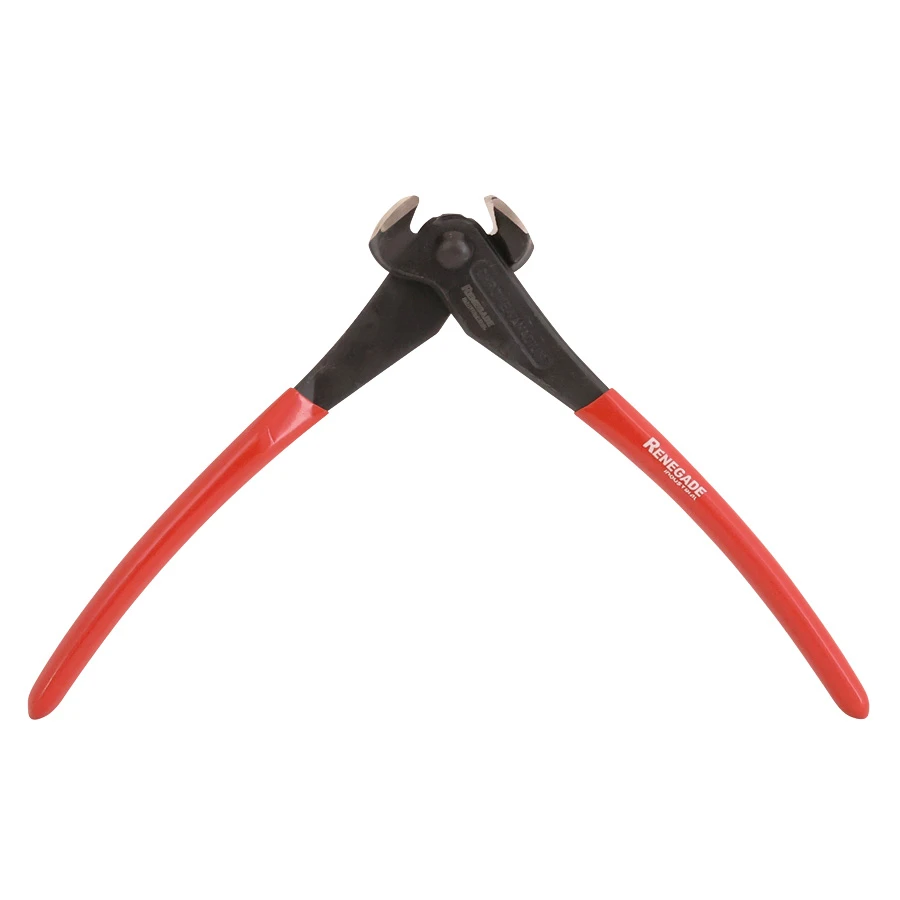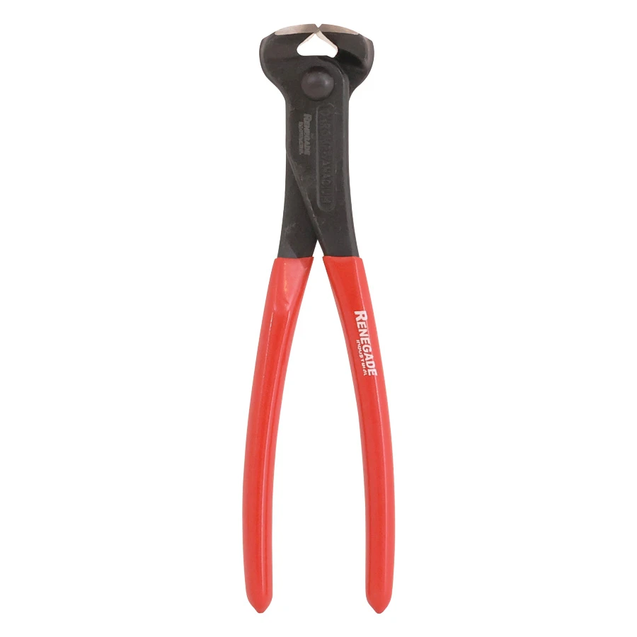 These heavy duty Renegade Industrial 8″ End Cutting Nippers feature high carbon steel construction with rugged hardened jaws. They easily cut nails, staples and wires flush with the surface which makes them the ideal wire cutters, staple and nail pullers or flush cutters. As useful as they are durable, we back these nippers with our limited lifetime warranty.Â