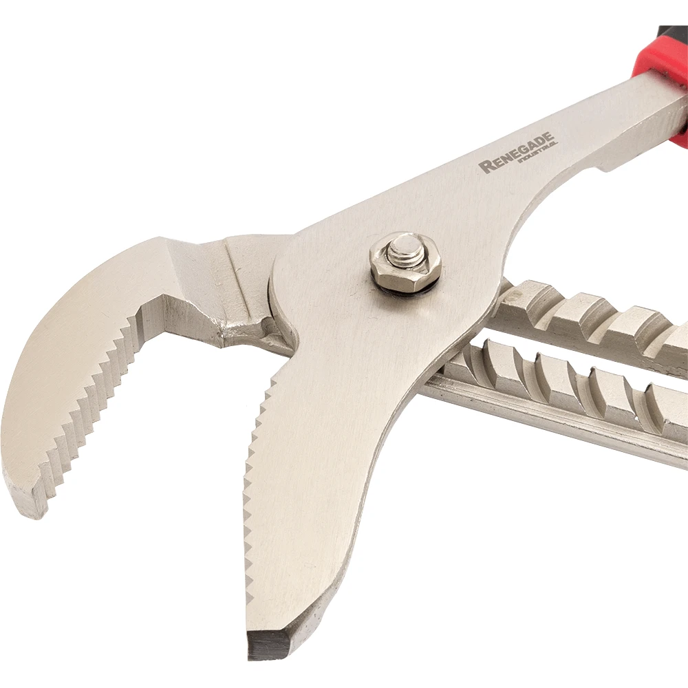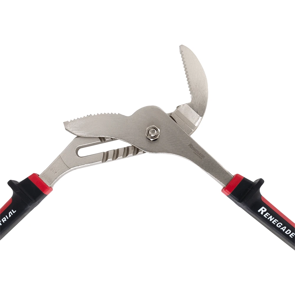 These Renegade Industrial 406mm Water Pump Pliers are trade quality and ideal for professional use. Manufactured from Chrome Vanadium Steel for longer life & superb durability plus the Nickel-Plated Finish for corrosion-resistance.