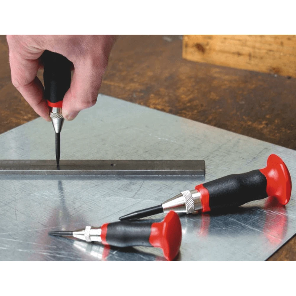 These Rennsteig 3.5mm x 11mm Automatic Centre Punches are activated by downward pressure – hammer not required! The impact strength is adjusted by rotation of the knurl.