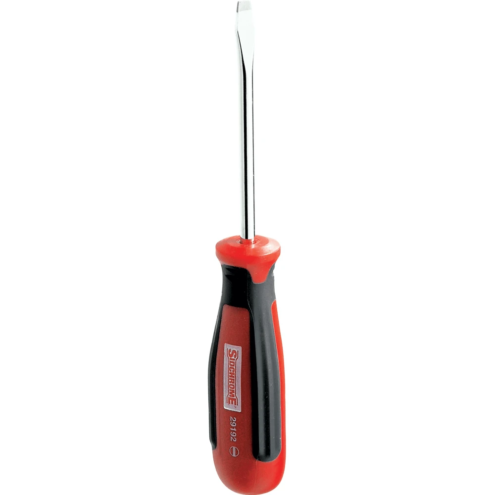 A tough, corrosion-resistant screwdriver for frequent, professional use. Featuring a round blade & a parallel tip, Sidchrome’s screwdrivers are constructed from premium chrome vanadium for maximum strength & durability. Ergonomic design with a durable moulded handle ensures superior torque & a blister-free grip. An essential hand tool for any serious professional’s toolbox.