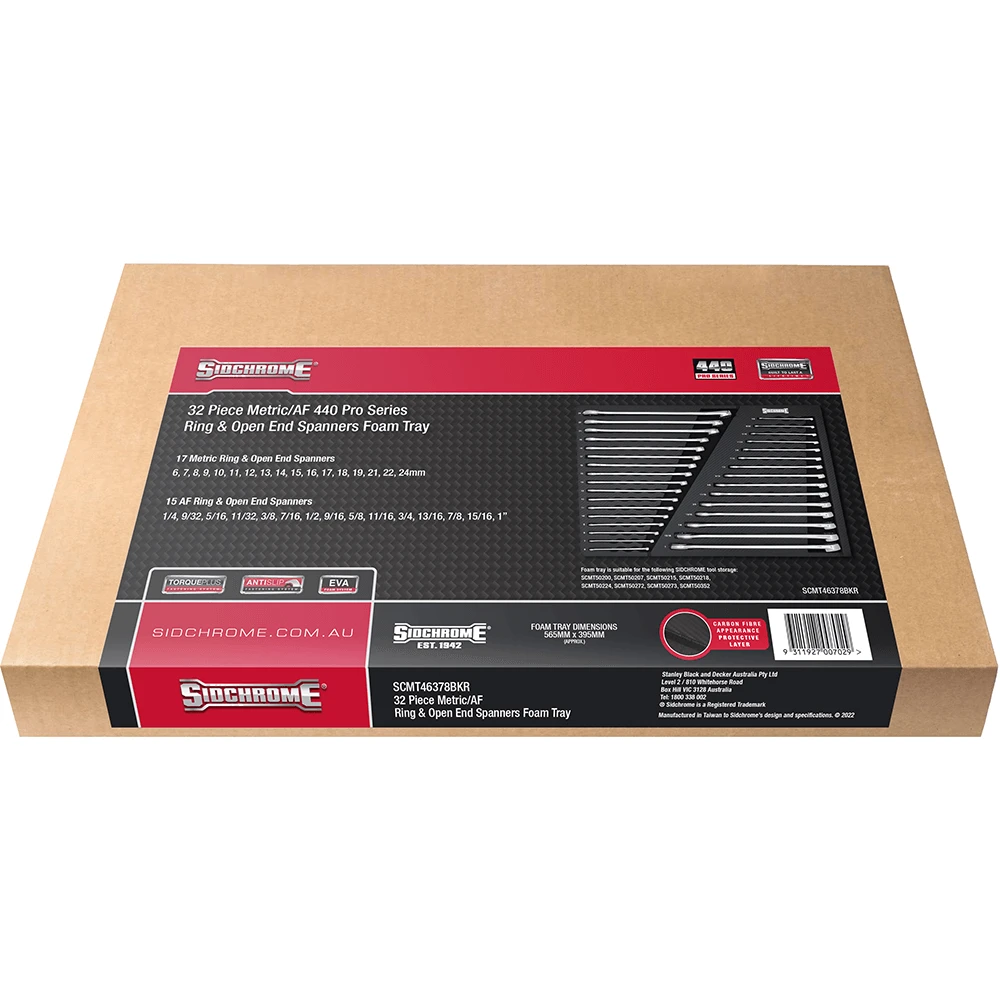 Sidchrome 32 Piece Metric/AF 440 PRO Spanner Set In Black Foam Tray