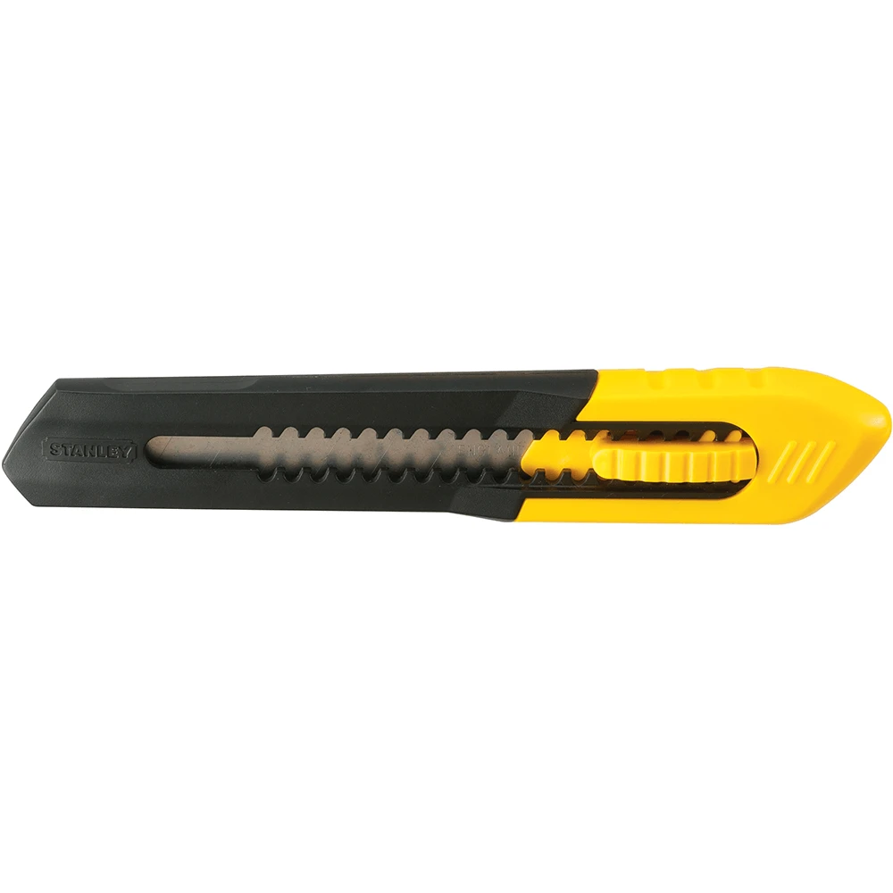 These Stanley 18mm QUICKPOINT Knives are light-duty, auto lock knives with QUICKPOINT snap off blades for convenience. The QUICKPOINT Snap Off Blades mean that you can snap-off blade sections providing fresh & sharp cutting points. The knives feature a durable and compact ABS body for simple storage and handling. This pack includes a pack of 3 QUICKPOINT Knives.