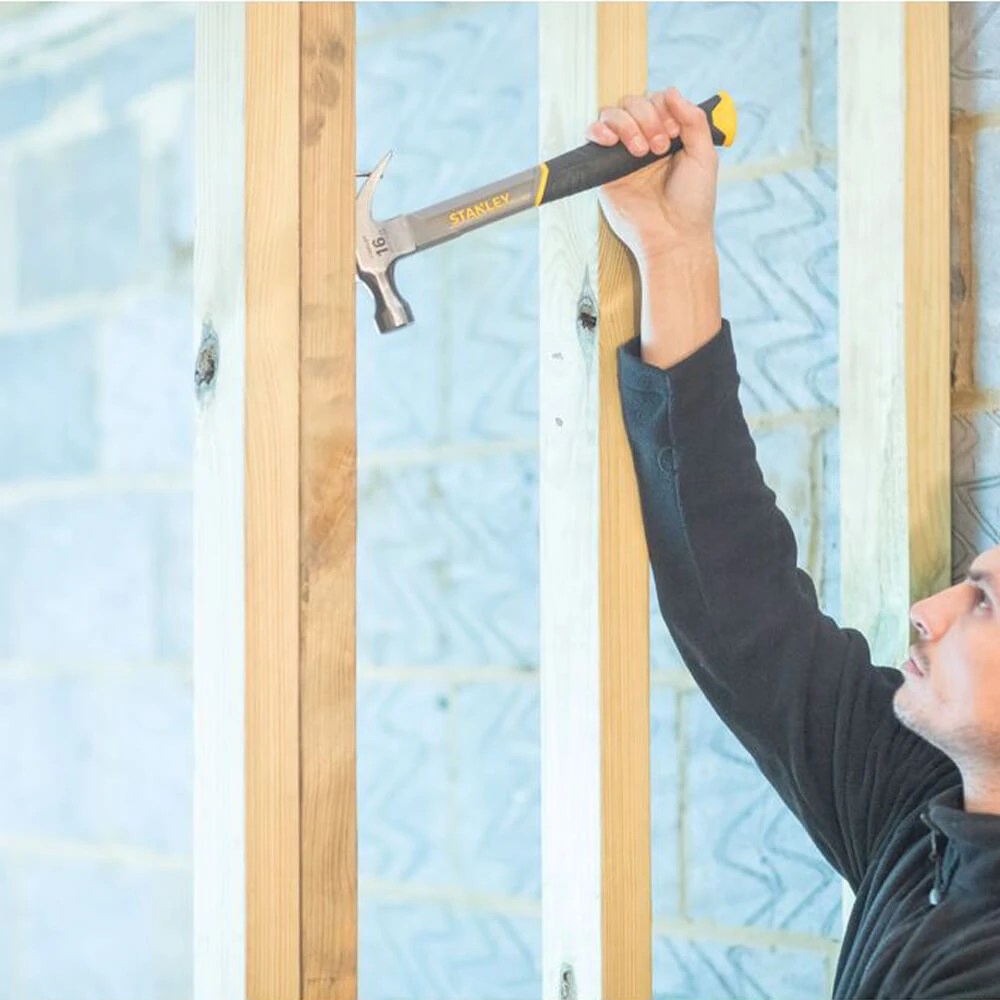 The Stanley 20Oz Fiberglass curved claw hammer offers an innovative solution for all your Hammering needs, constructed with a Fiberglass core for added strength and durability. The 20Oz weight of the hammer makes it easier for driving larger nails. Designed with a bi-material handle for increased comfort and Anti slip grip. The hammer includes a new and improved overstrike protection feature which protects the shaft of the hammer against impacts for a greater life. The curved claw is ideal for prying and removing nails from wood.