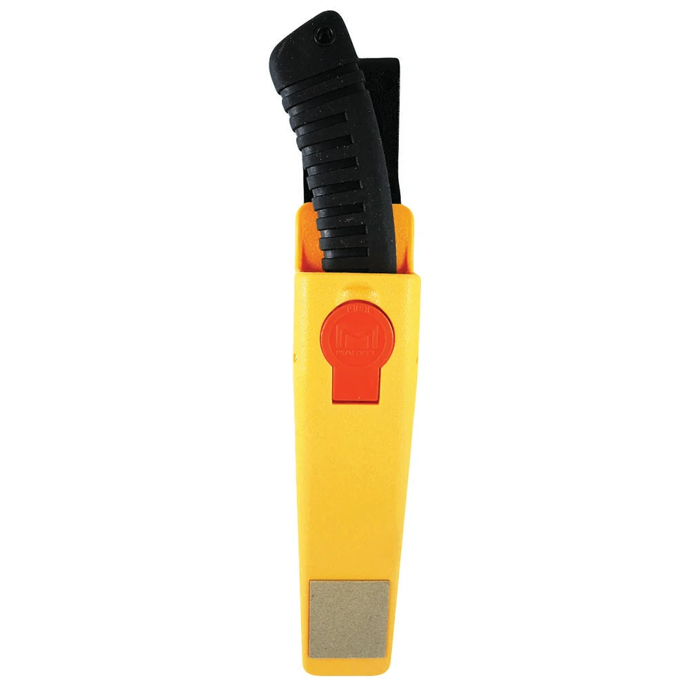 Fixed Blade Knife with Sheath is made out of heat treated high carbon steel & comes with a safety lock button.