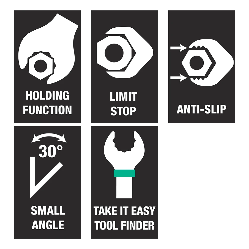- Fine Tooth Mechanism – The ratcheting feature at the ring end boasts an exceptional, fine tooth mechanism – 80 teeth in all – which provides greater flexibility, even in very confined working spaces.
