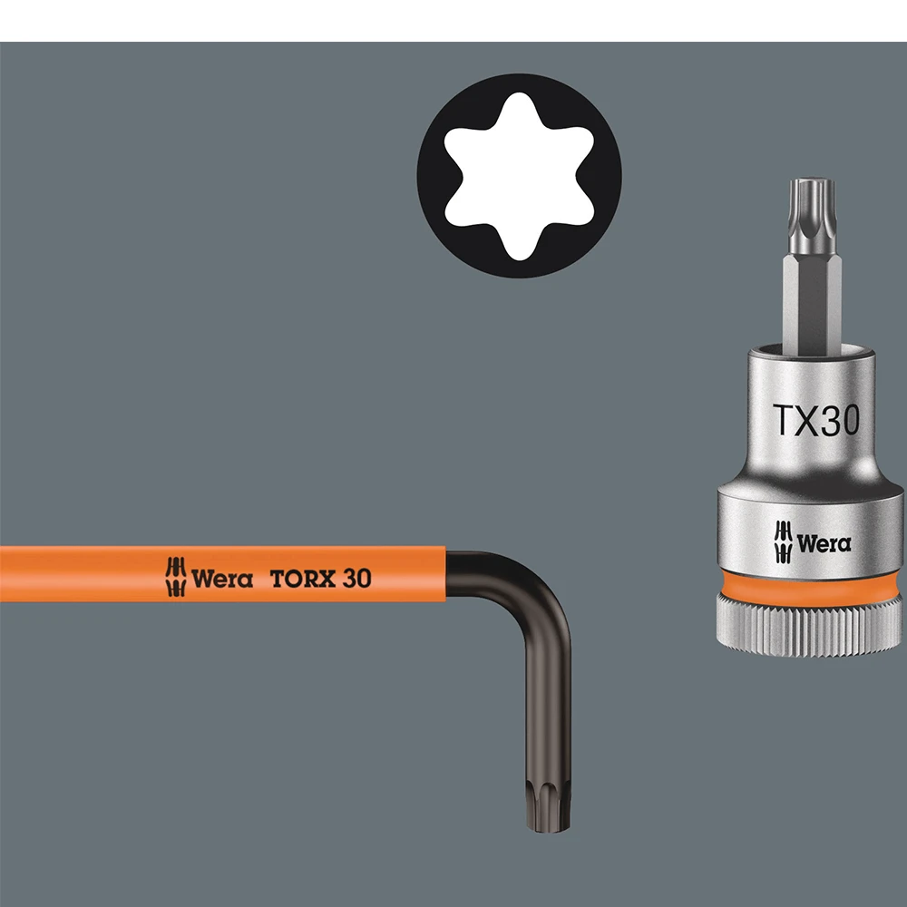 - TORX HF Profile – In tight assembly or disassembly situations, for example in engine compartments, it is not possible to securely hold the screw with the hand on the screwdriver, & the screw subsequently often gets lost. Lengthy searches or the loss of the screw (with the associated danger that could bring about) are the consequence. The HF tools developed by Wera are ideal because they feature an optimised geometry of the original TORX profile. The wedging forces resulting from the surface pressure between the drive tip & the screw profile mean that the screw is securely held on the tool!