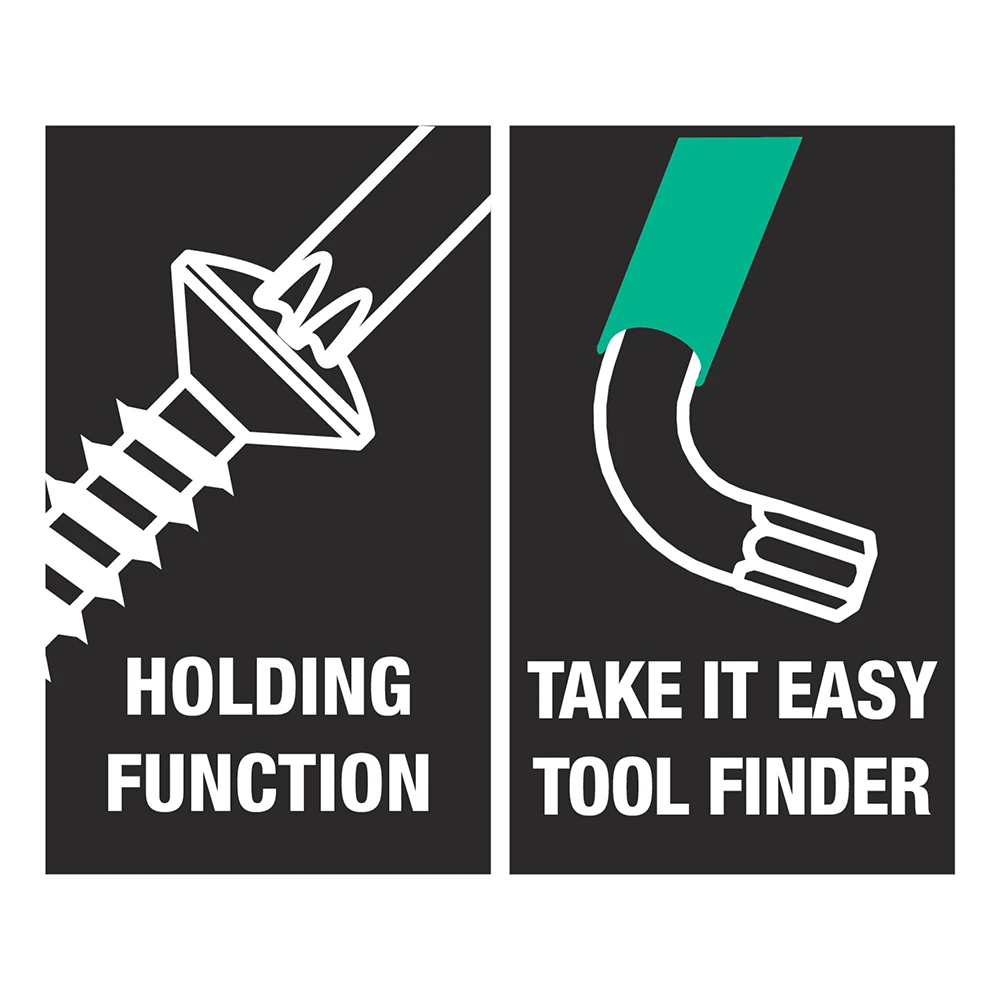- “Take It Easy” Tool Finder – Take it easy tool finder system – with profile & size colour-coding for quick & easy tool selection. Colour-coded system for hexagon drive screws (L-Keys, Zyklop bit sockets), external hex drive screws & nuts (Joker wrenches, Zyklop sockets & Zyklop bit sockets with holding function), & TORX drive screws (L-Keys, Zyklop bit sockets).