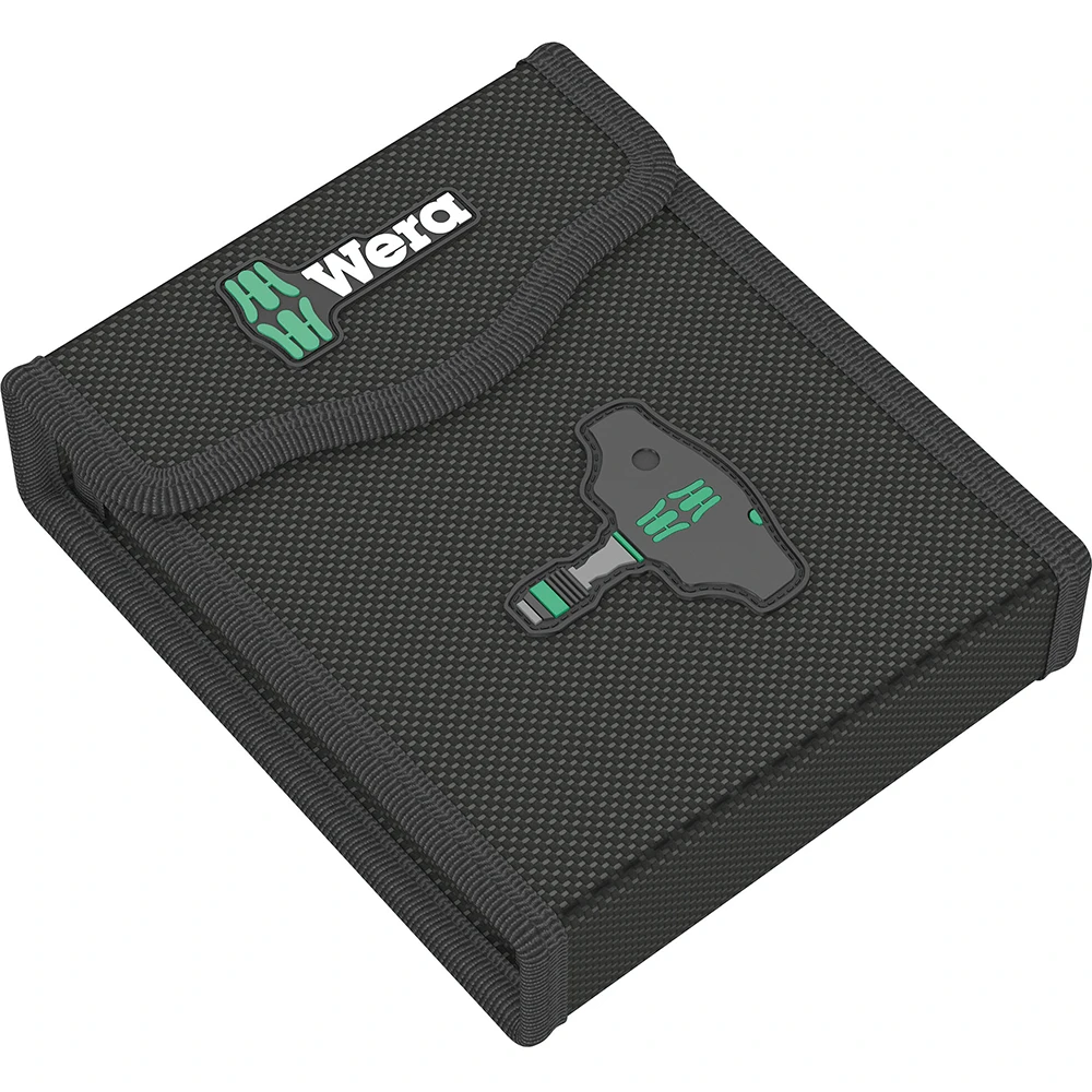 17-piece set in a robust textile box. One 416 RA T-handle bit holding screwdriver with ratchet function & Rapidaptor quick-release chuck for 1/4″ bits. The integrated ratchet with fine toothing (80 teeth/return angle 4.5°) eases & accelerates screwdriving without having to reposition the tool. The ratchet mechanism completely embedded in the handle ensures very handy & comfortable work. With reversing lever for comfortable clockwise/counterclockwise direction change in one-hand operation. The ergonomic shape of the handle fills the ball of the hand well, the fingers lie securely in the softly rounded recessed grips. The whole hand comes into contact with the handle, friction loss between hand & handle is avoided. Bit holder for bits with 1/4″ external hexagon drive as per DIN ISO 1173-C 6.3 & E 6.3. With Rapidaptor technology for lightning-fast bit changes. 16 tough bits, 1/4″, 89 mm long, for universal use.