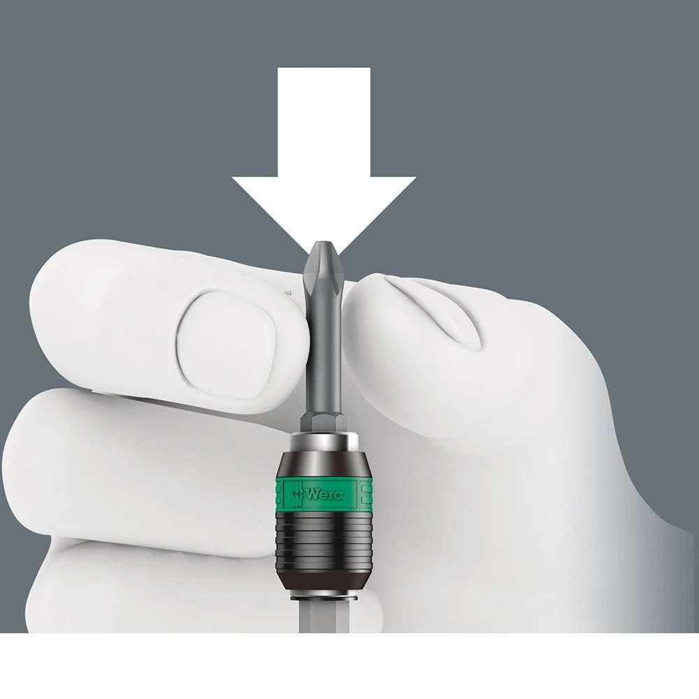 - Rapid-Out – Simply push the sleeve forward to change the bit. The spring mechanism lifts the bit off the magnet & unlocks the tool. The bit can be easily removed. The rapid-out function makes it easy to remove even the smallest bits without extra tools.