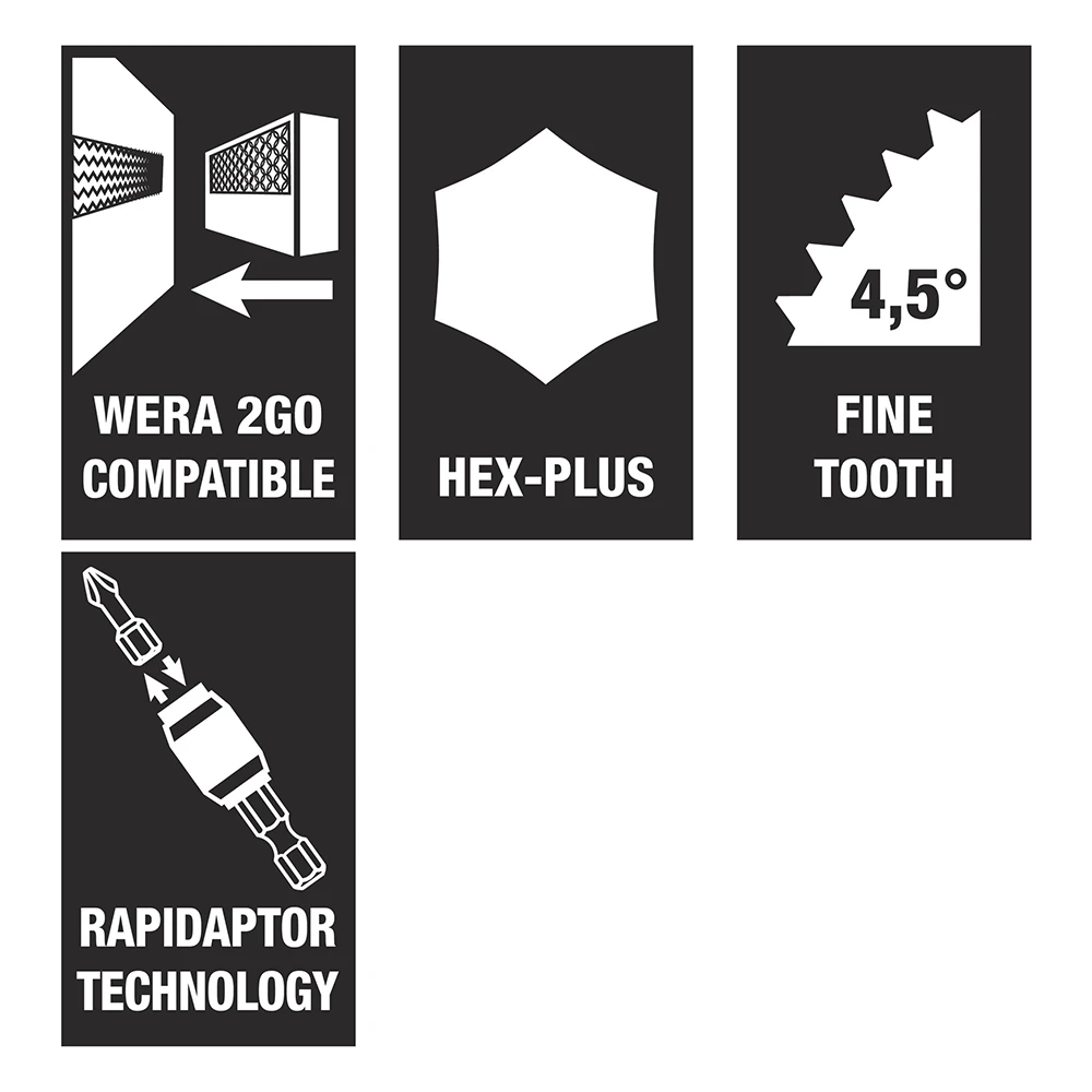 - 1x 416 RA T-handle bit holding screwdriver with ratchet function & Rapidaptor quick-release chuck: 1/4″ x 45 mm