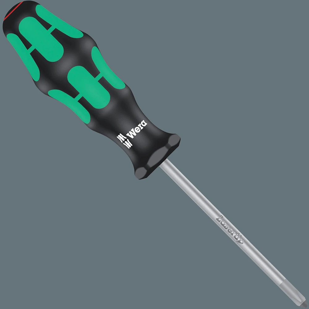 - Lasertip Prevents Slipping Out – It happens time & time again that the tip slips out of the screw head when screwdriving, sometimes damaging valuable surfaces or even causing injury. The tips of the Wera Lasertip screwdrivers are microscopically roughened by means of a laser. This rough surface literally “bites” itself firmly into the screw head. Slipping out becomes a thing of the past.