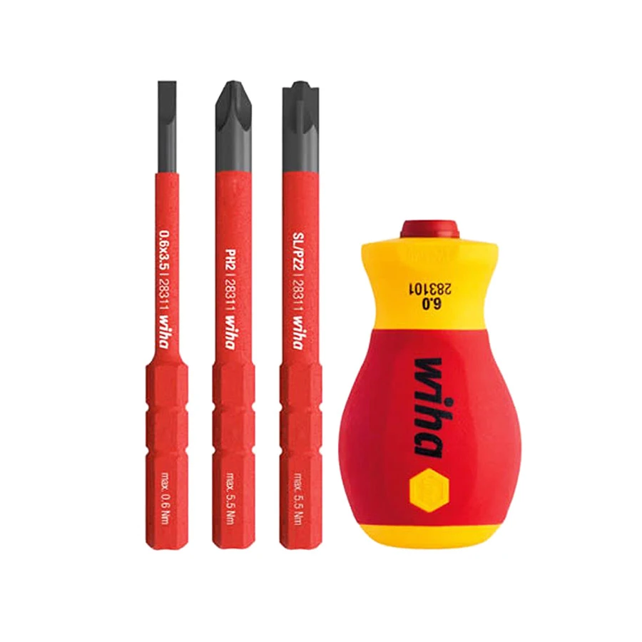 These 41230 Wiha Insulated Stubby Screwdrivers are designed to access confined spaces. Includes 1x slotted 3.5 x 75mm, 1x Phillips PH2 x 75mm & 1x Pozidrive SL/PZ2 x 75mm.